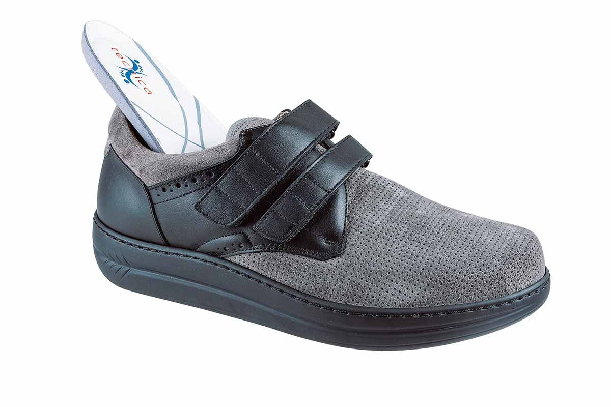Energy SEMIRIGIDA is a shoe indicated for the daily treatment of rheumatic foot, joint pain, and significant deformities outside the home. It also prevents grade 1 and 2 diabetic foot conditions, even in the presence of neuropathy. The semi-rigid biomechanical sole is ideal for diabetic patients requiring maximum protection against the risk of ulcers.