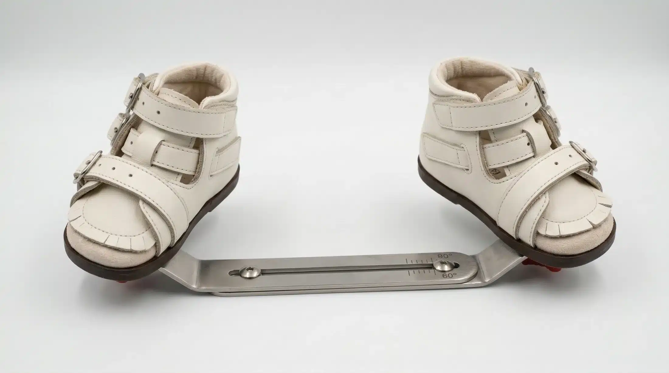 - Foot Abduction: Each shoe is set at a specific outward angle (typically 60β70Β° for the affected foot) on the bar, gently keeping the foot in the corrected position.